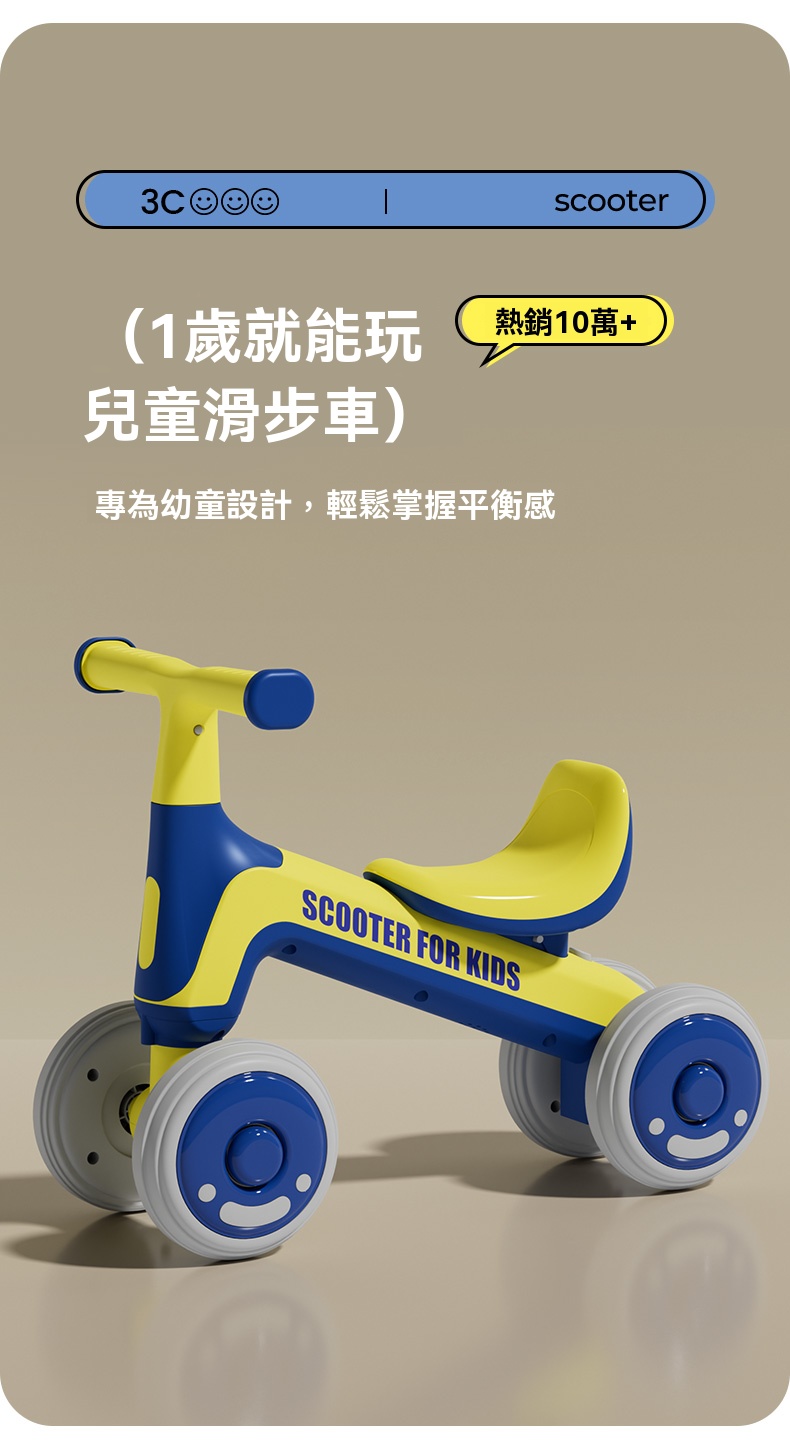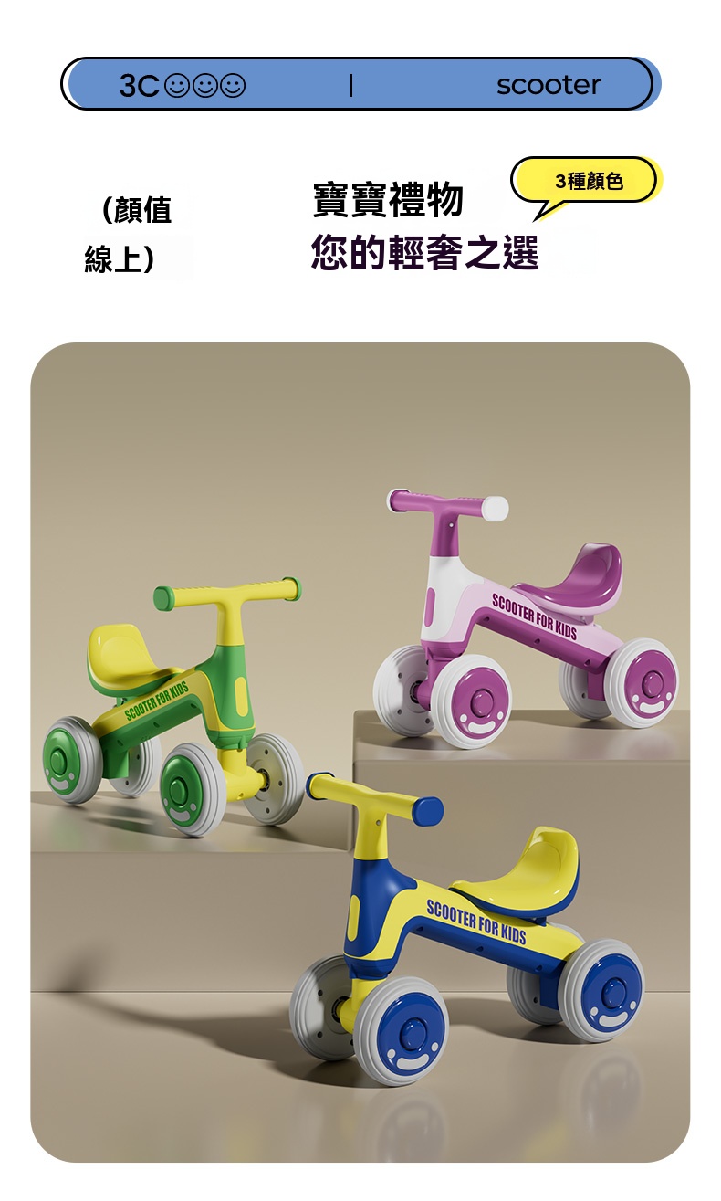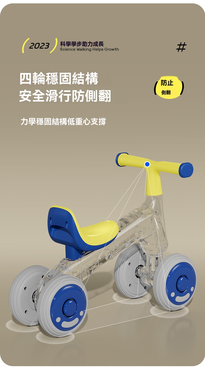 【萌寶平衡閃電車】四輪黃金支點・無腳踏設計・1-3歲學步自信啟蒙!